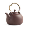 These new Cloud Kettles were created by Master Deng Ding Sou, who is one of Taiwan’s greatest tea treasures. If you have tried our gongfu kettles, you know how well his designs function. We are in love with the spout, the shape, the clay and especially the cloudlike pour. Master Deng has blended a nice purplish clay that makes clean and smooth water for these Cloud Kettles. To us, the bodies of these kettles also appear billowy and somehow cloudlike. They seem soft and fluid, gathering the rain for tea. The cloud-shaped bronze handles are gorgeous and comfortable to use. We are very proud to offer these to the worldwide community. They are gorgeous, pour like a dream and make beautiful water.